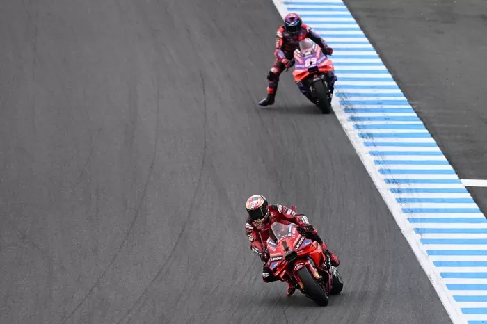 Bagnaia unggul atas rivalnya, Jorge Martin, dengan selisih hanya 0,05 detik, mencatatkan waktu terbaik 1 menit 57,679 detik di lintasan kering.